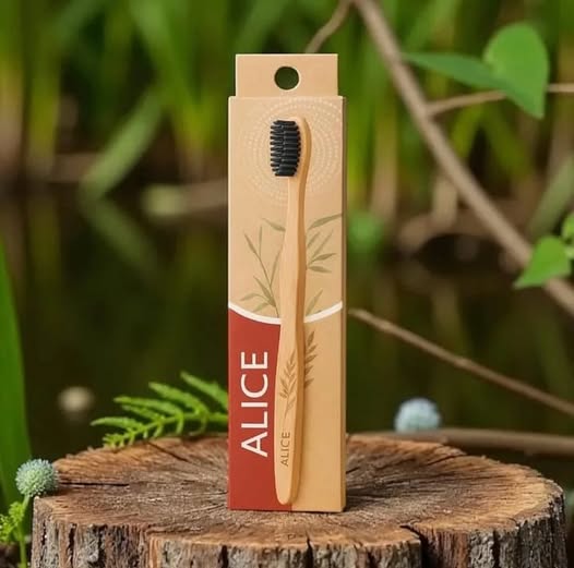 اليس فرش اسنان خشب بخلاصة الفحم الطبي النشط للمساعدة في تفتيح الاسنان.