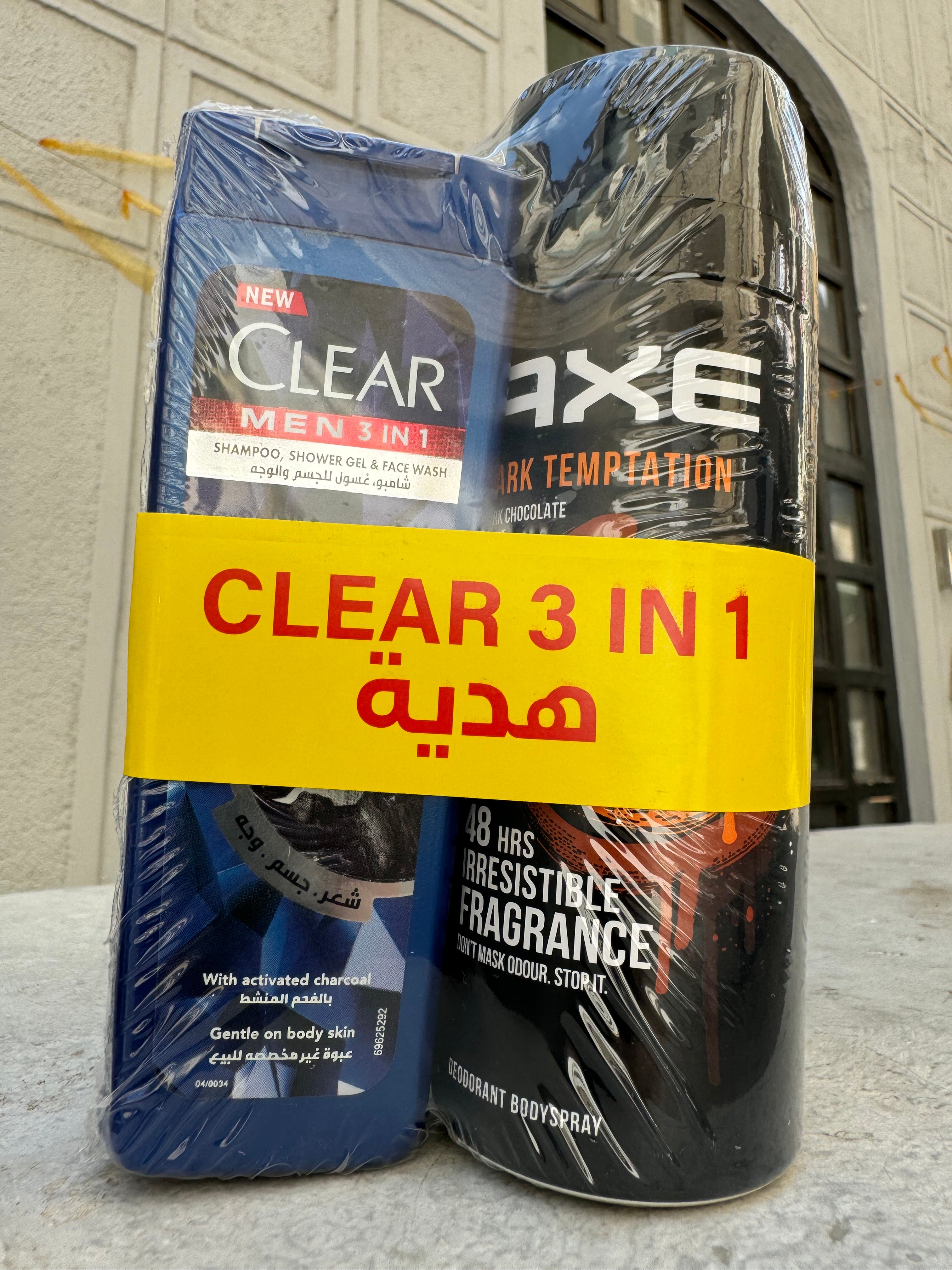 AXE has your back with this 3-in-1 offer! With the enticing scent of Dark Temptation, the spray keeps you smelling great all day while the Clear Shampoo cleanses and nourishes your hair. Stay fresh and confident with this irresistible combo 💪🌟