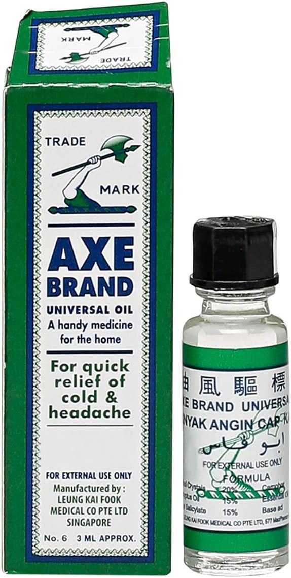 Axe Brand Universal Oil (also known as Axe Brand Medicated Oil ) is made from a unique formula and has been used throughout the world for nearly 60 years. It is pure in colour, pleasant in odour. It is mild yet suitable for use by both adults and children for relief of giddiness, headaches, travel sickness, stomach-ache, insect bites, rheumatic pain, muscular pain, blocked nose and cold. These Axe brand medicated products are tested on various parameters to rule out every possibility of flaw.