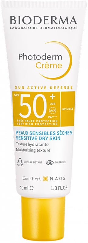 تم تركيب بيوديرما واقي الشمس فوتوديرم كريم للبشرة الجافة والحساسة بعامل حماية 50 بتقنية عالية الفعالية. يجعل البشرة صحية ومرنة، بحيث يقلل إختراق الأشعة فوق البنفسجية للبشرة، يقدم حماية مضادة للأكسدة، ويمنع علامات التقدم في السن.