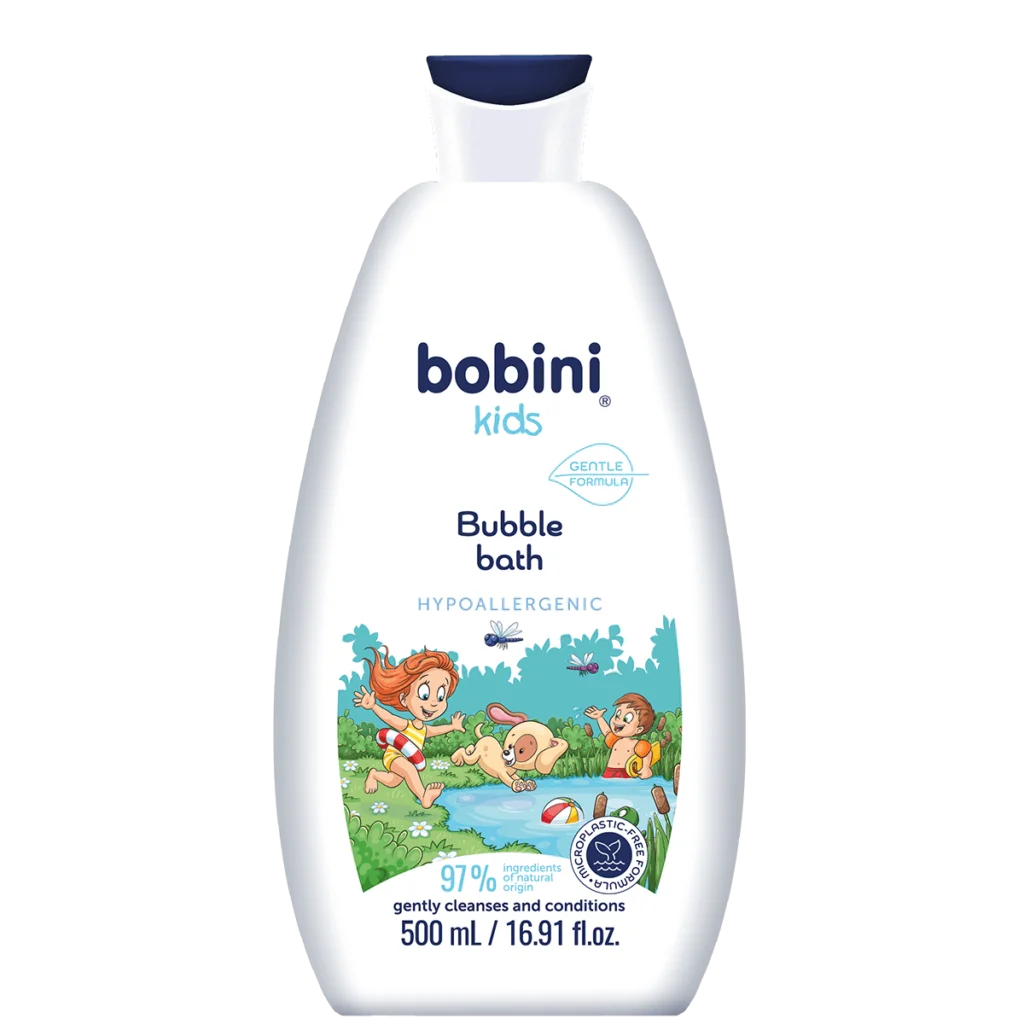 Mild formula of Bubble bath – hypoallergenic, which in 97% is based on substances of natural origin, provides optimal care for delicate skin. Heavenly fluffy foam that the cosmetic creates makes the bath a moment of relaxation for the toddler. Bubble bath leaves the skin moisturized and smooth, while protecting it from drying up. It is suitable for sensitive and allergic skin. Product is dermatologically tested and is pH neutral for the skin. It may be used for daily care over one year of age.