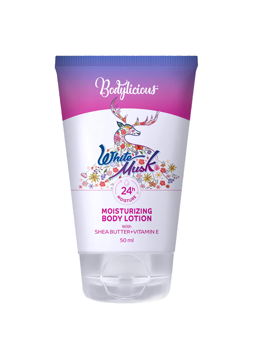 Indulge your skin with our White Musk Moisturizing Body Lotion. This premium 50ml formula delivers deep