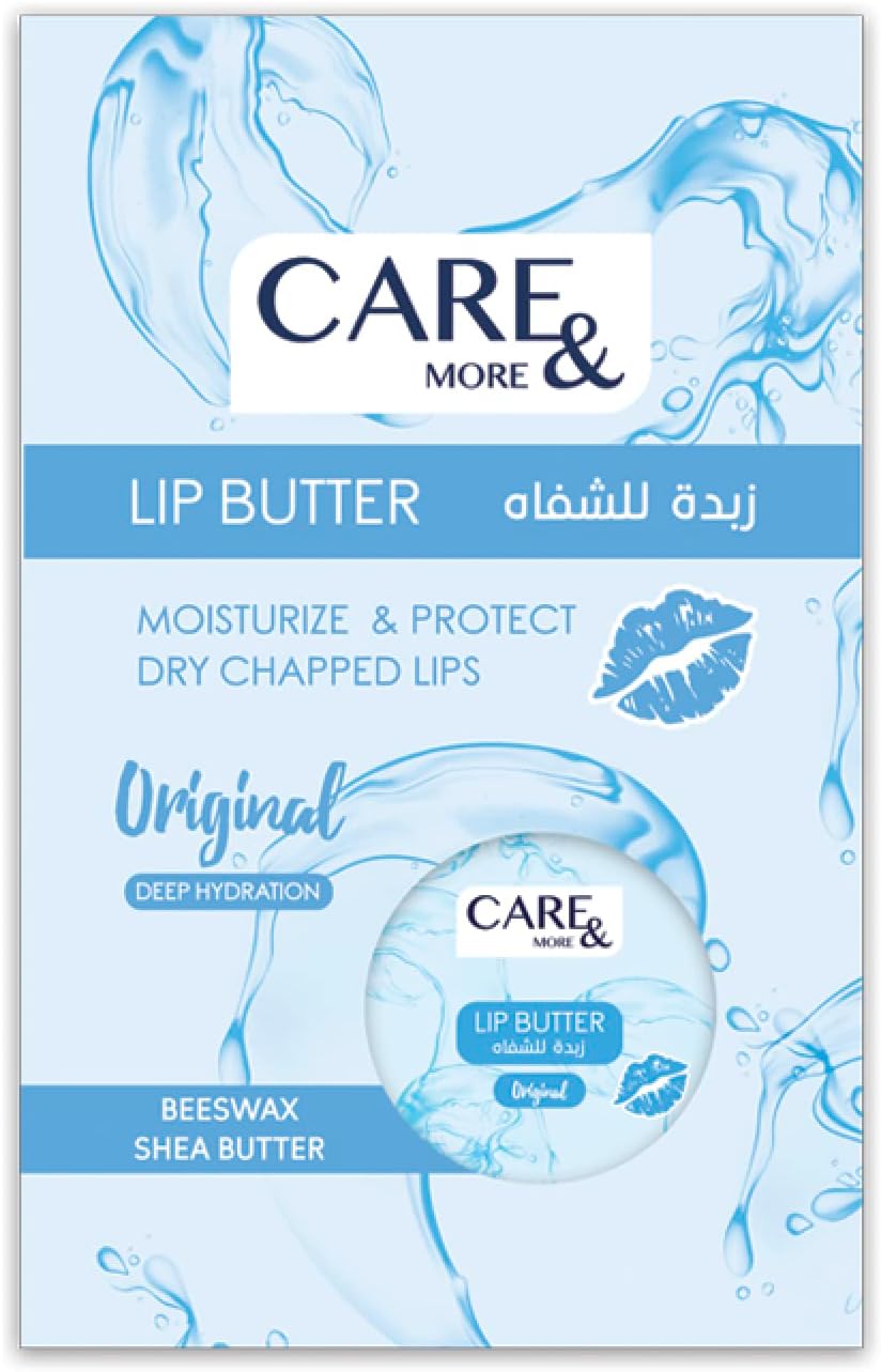 Care and More Original Lip Butter is a lip care product designed to provide nourishment and protection to your lips. The Original Lip Butter by Care and More is specially formulated to nourish and hydrate your lips, keeping them soft and supple. The lip butter features a rich and creamy texture that deeply moisturizes your lips, helping to prevent dryness and chapping. The formulation of the lip butter is designed to provide long-lasting hydration, keeping your lips moisturized for an extended period. The Original Lip Butter creates a protective barrier on your lips, shielding them from harsh environmental factors such as wind, cold weather and UV rays. The lip butter has a smooth and comfortable texture that glides effortlessly onto your lips, providing a soothing and nourishing feel. The lip butter can be used as a part of your daily lip care routine. Apply it whenever your lips feel dry or as desired throughout the day. The product comes in a 20g container, making it compact and easy to carry in your purse or pocket for on-the-go application.