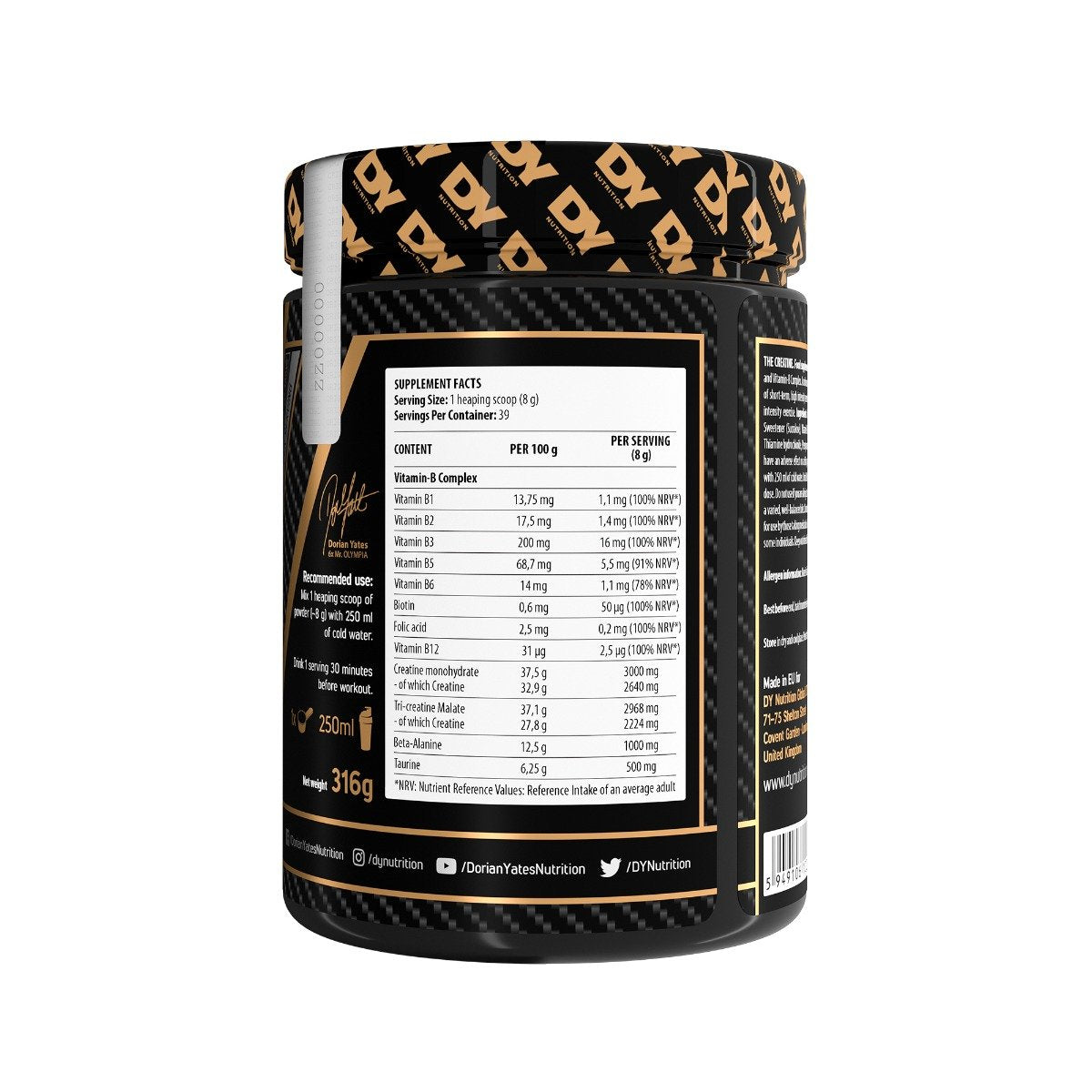 - 1000 mg Beta-Alanine for prolonged muscle Endurance