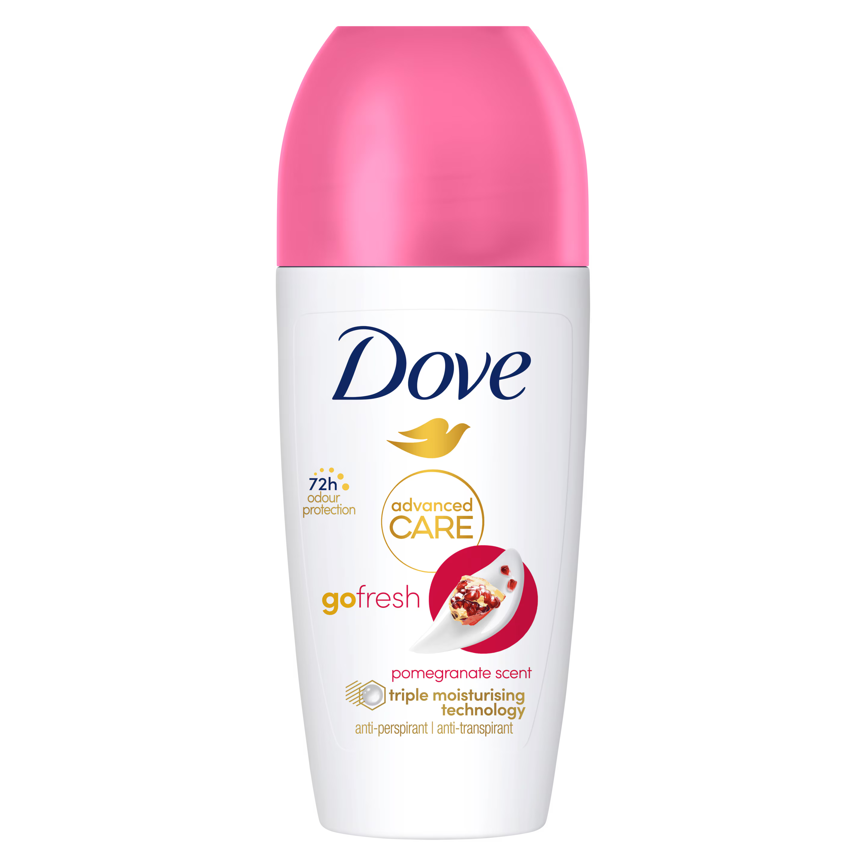 Dove 72h Advanced Care Antiperspirant Deo Roll-on Pomegranate giver op til 72 timers beskyttelse mod sved og lugt. Dove Pomegranate Roll-On har en alkoholfri formel. Dove Pomegranate Roll-On indeholder Triple Moisture teknologi. Dove Pomegranate Roll-On har en kølig, forfriskende duft af granatæble og citronjernurt. Dove Pomegranate Roll-On emballagen er 100% genanvendelig. Dove produkter er PETA Vegan certificeret og aldrig testet på dyr.