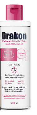 Cleanse and brighten your skin with DRAKON 5IN1 WHITENING MICELLAR WATER 500ML. This multi-functional product not only removes makeup and impurities, but also helps to even out skin tone and improve overall complexion. Pamper your skin with the power of DRAKON. 🧖♀️🌟
