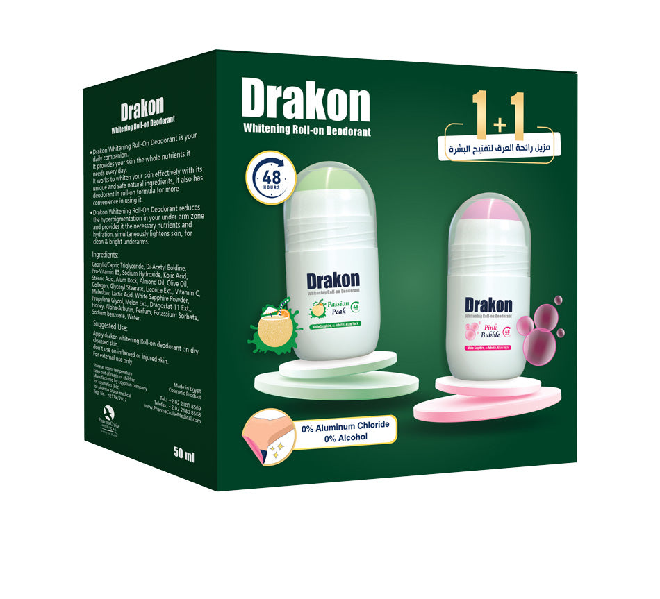 دراكون بينك بابل مزيل رائحه لتفتيح البشرة رول اون 50 مل + دراكون باشون بيك مزيل لرائحة لتفتيح البشرة رول اون 50 مل