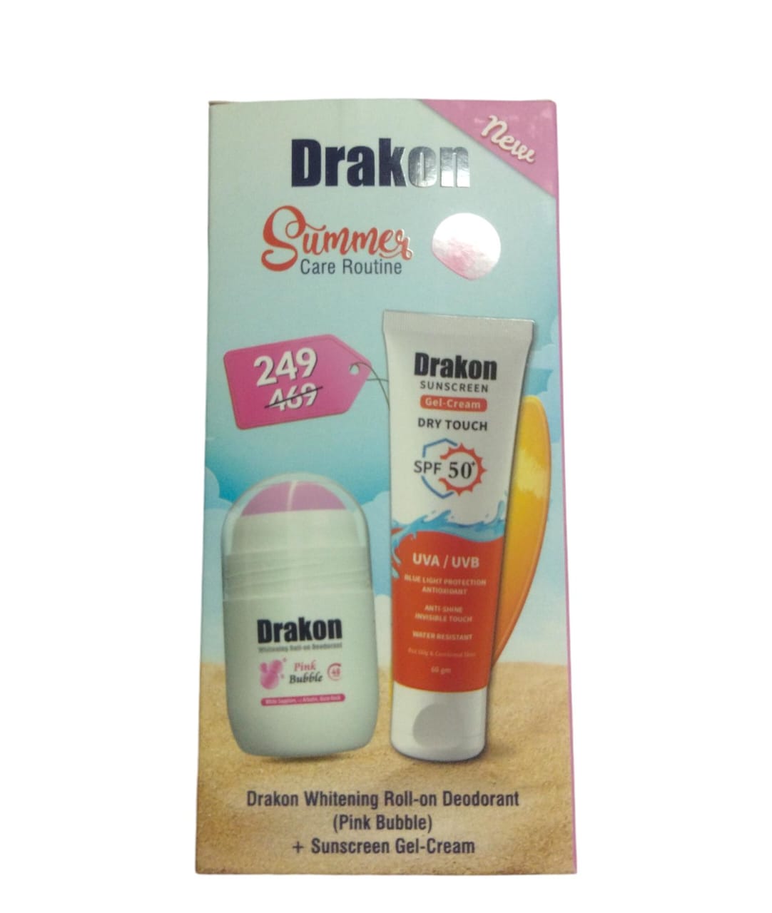 Stay sun-safe this summer with 🔥 Drakon's Summer Care Routine! 🔥This offer packs a roll-on sun screen, SPF 50+sunscreen, and a 60g facial cream for total skin protection. 🤩 Pamper your skin while shielding it from the sun with this summer must-have! 🤗