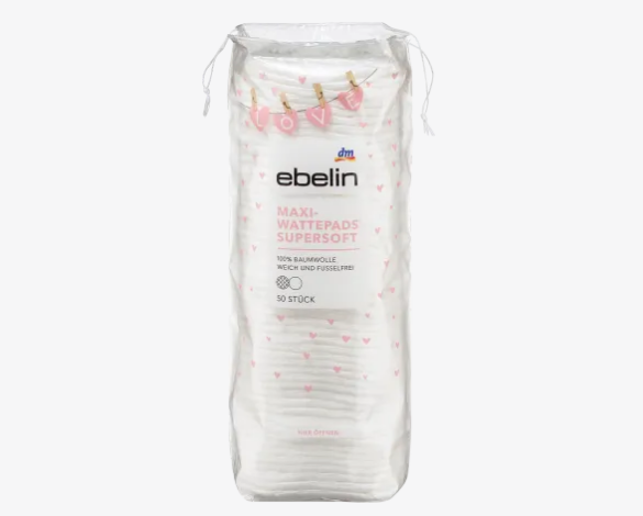 With the Maxi cotton pads from ebelin, make-up and nail polish can be removed extremely quickly. Thanks to the extra large, voluminous pads, even heavy make-up is removed in no time. The structured side cleanses the face, nails, neck and décolleté thoroughly. The extra-soft side is ideal for applying care products to the face. The cotton pads are made of 100 percent cotton and are lint-free.