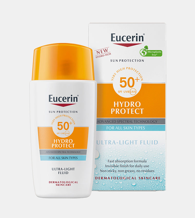 • تم اختباره من قبل أطباء الجلدية: سائل الحماية من الشمس Eucerin Sun Hydro Protect Face Fluid SPF 50 هو منتج للعناية بالبشرة تم اختباره من قبل أطباء الجلدية ويوفر حماية عالية من أشعة الشمس