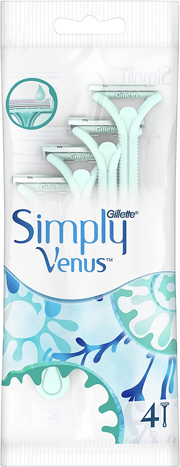 Gillette Simply Venus 2 women’s disposable razors provide a Venus-close shave. This disposable razor features 2-bladed and a MoistureRich strip for an easy glide and a delightfully simple shaving experience.