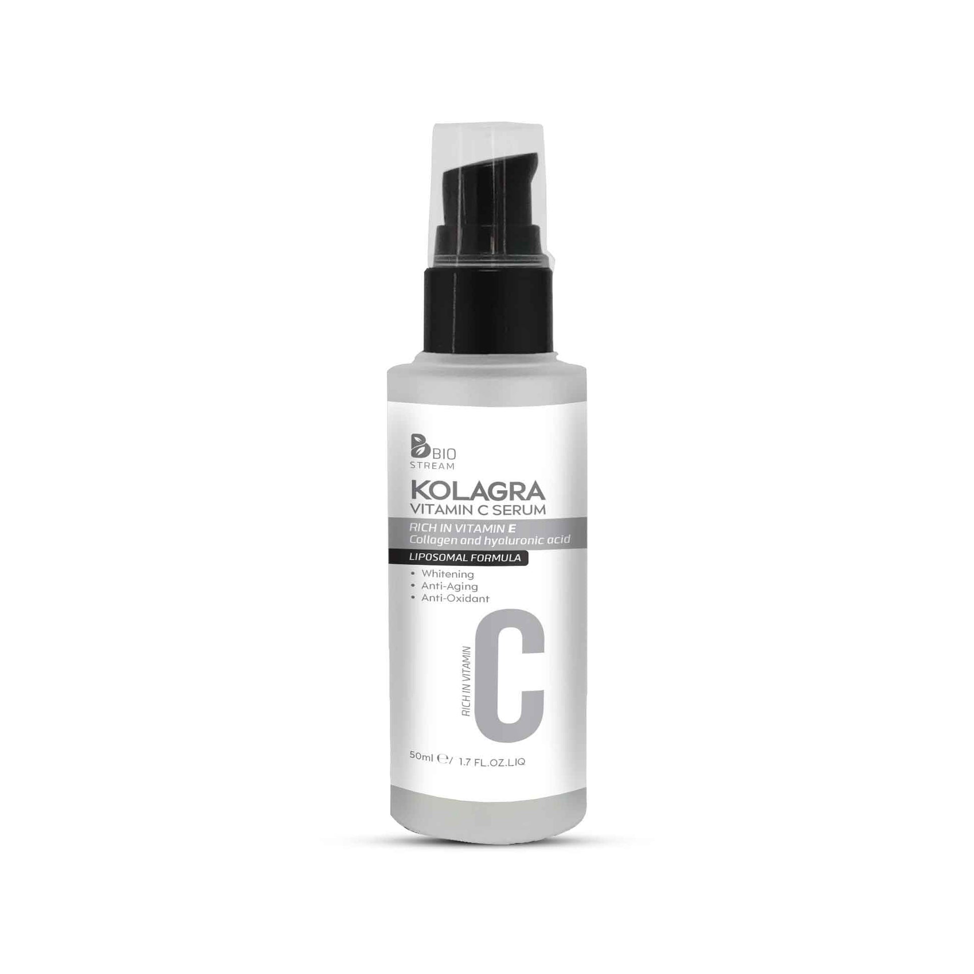 Kolagra Vitamin C serum Liposomal formula is used to treat and prevent the first signs of aging and to revive dull skin that has lost its vitality .this Vitamin C Serum helps to reduce the appearance of wrinkles , dark spots and protects from free radical damage .