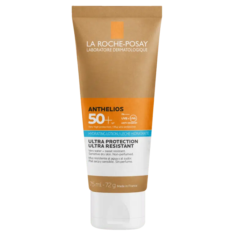 Protect and hydrate your skin with La Roche-Posay Anthelios Hydrating Lotion SPF50+. Its non-greasy, lightweight formula is perfect for all skin types and water-resistant for outdoor activities. Plus, it helps prevent premature aging caused by sun damage.