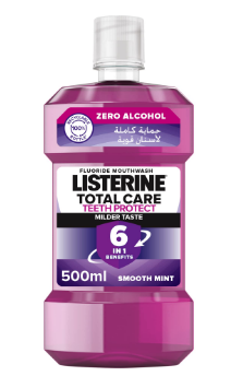 Give your mouth complete care with Listerine Total Care Teeth Protect Milder Taste Mouthwash. Listerine Total Care Teeth Protect Milder Taste is a less intense, alcohol-free mouthwash that gives your mouth a clean, fresh feeling and taste. The power of the swish fights bad breath bacteria in your whole mouth, including on your teeth, tongue, and gums. It features a smooth mint flavour that gives your mouth a clean feeling you can taste. Listerine Total Care Teeth Protect Milder Taste delivers 6 benefits to clean your whole mouth; it prevents cavities, restores enamel, keeps gums healthy, reduces plaque and freshens breath. It also fights bacteria between teeth and provides 12 hours of germ protection. We at Listerine are not only committed to helping you maintain the best oral health but also dedicated to protecting our planet. Listerine continuously strives to be more responsible and helping promote a healthier planet. We use 100% recyclable bottles and caps*. Our new bottles now contain 50% post-consumer recycled plastic. *Where facilities exist; safety seal excluded.