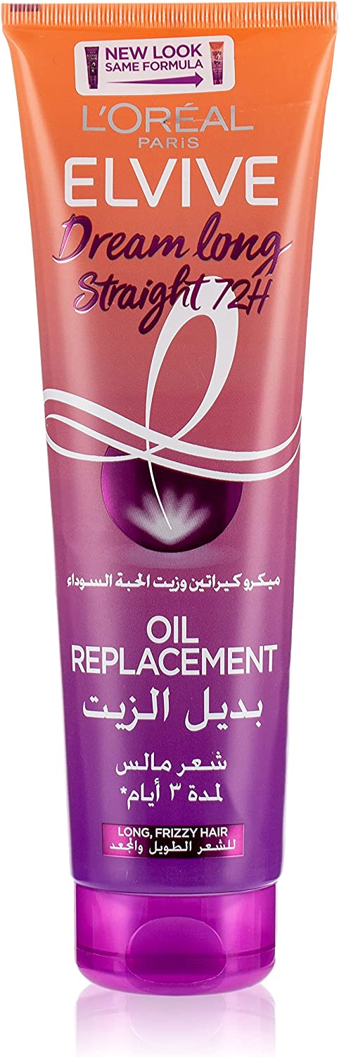 Frizzy Hair? Tame your frizz and stretch it out to make your hair look longer and sleeker for up to 72H of straight hair with no frizz. L’Oréal Paris Elvive Dream Long Straight Oil Replacement is enriched with Black Cumin Oil and Micro Keratin, a smoothing technology to soften the hair fibers. As a result, the hair will become naturally straight, supple, and shiny, extending hair length with no frizz. Directions: Apply on wet or damp hair. Blow dry your hair or proceed with your usual brushing