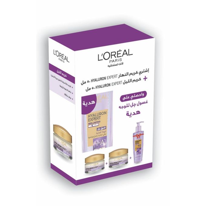 تقدم لوريال باريس عرض  روتين الترطيب. تعمل المجموعة على ترطيب بشرتك بشكل مكثف. يتضمن كريم النهار الذي يحتوي على عامل حماية من الشمس بنسبة 20% لحماية بشرتك من الأشعة فوق البنفسجية، وكريم الليل لترطيب مكثف طوال الليل، وغسول الجل لإعادة ملء بشرتك وترطيبها.