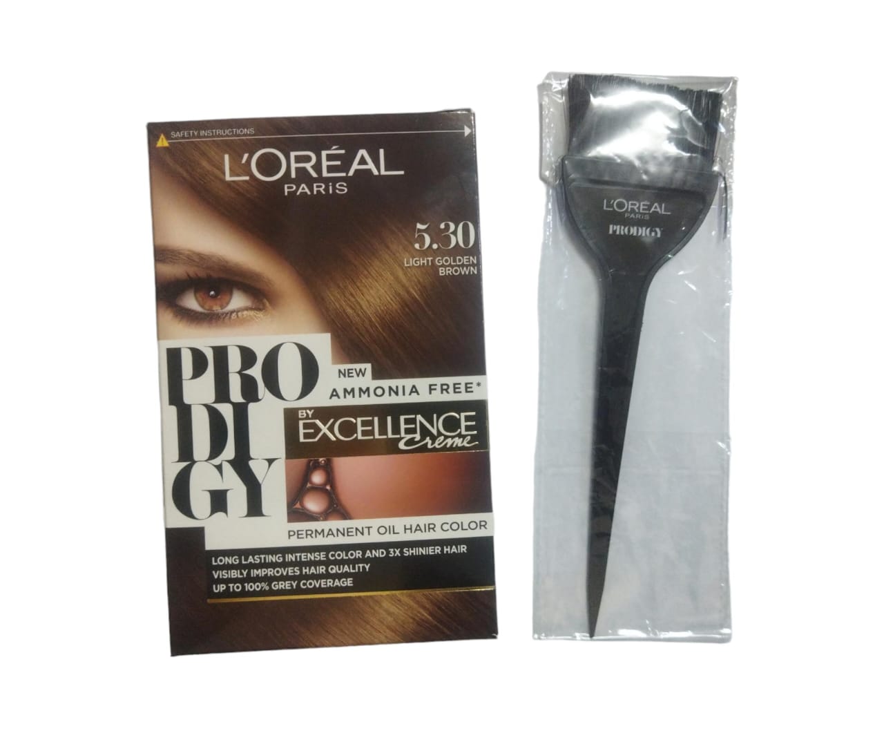 LOREAL PRODIGY PERMANENT OIL HAIR COLOR GIFT BRUSH - 5.3 LIGHT GOLDEN BROWN