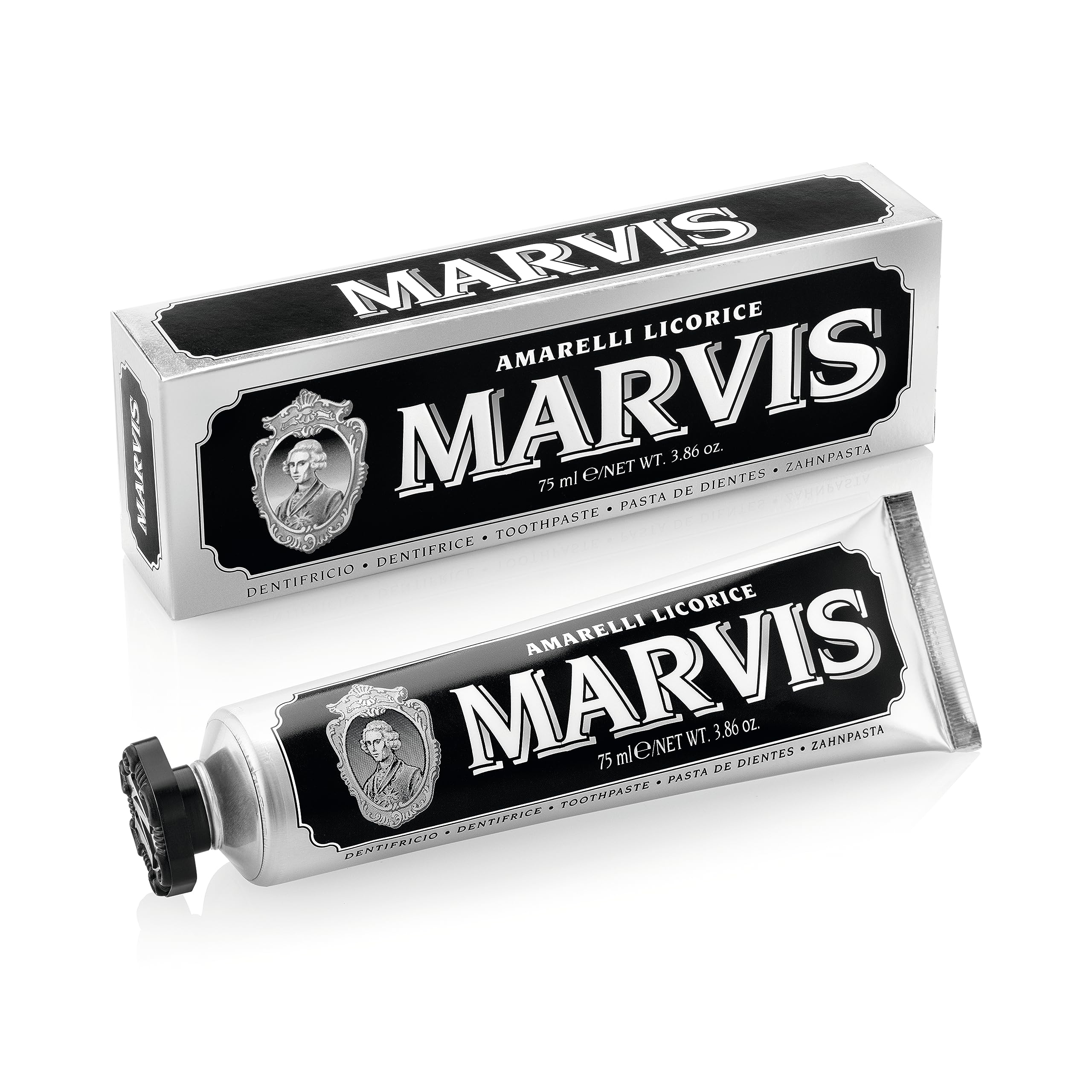 A rich, creamy toothpaste that offers a tingling sensation and removes plaque and tartar for a sparkling white smile. This collaboration with the Italian firm of Amarelli, famous for producing liquorice since 1731, has given rise to an elegant aroma that combines the clean, seductive flavor of liquorice with the freshness of mint. Marvis is a luxury line of oral care products that turn your daily teeth cleaning ritual into a wonderful sensory experience. Our gentle xylitol- and sorbitan-based formulas cleanse and condition your teeth and gums without causing irritation.