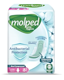 MOLPED Anitbacterial Protection Maxi Compressed Long 8Pads. Keep yourself 💪 for the 💁♂️ ahead with these 8 super-absorbent ☁️ that protect you from 💣 germs. 🤖 up with a 🔐 seal that locks in 🧲 and️ moisture for all-day comfort. 🤩