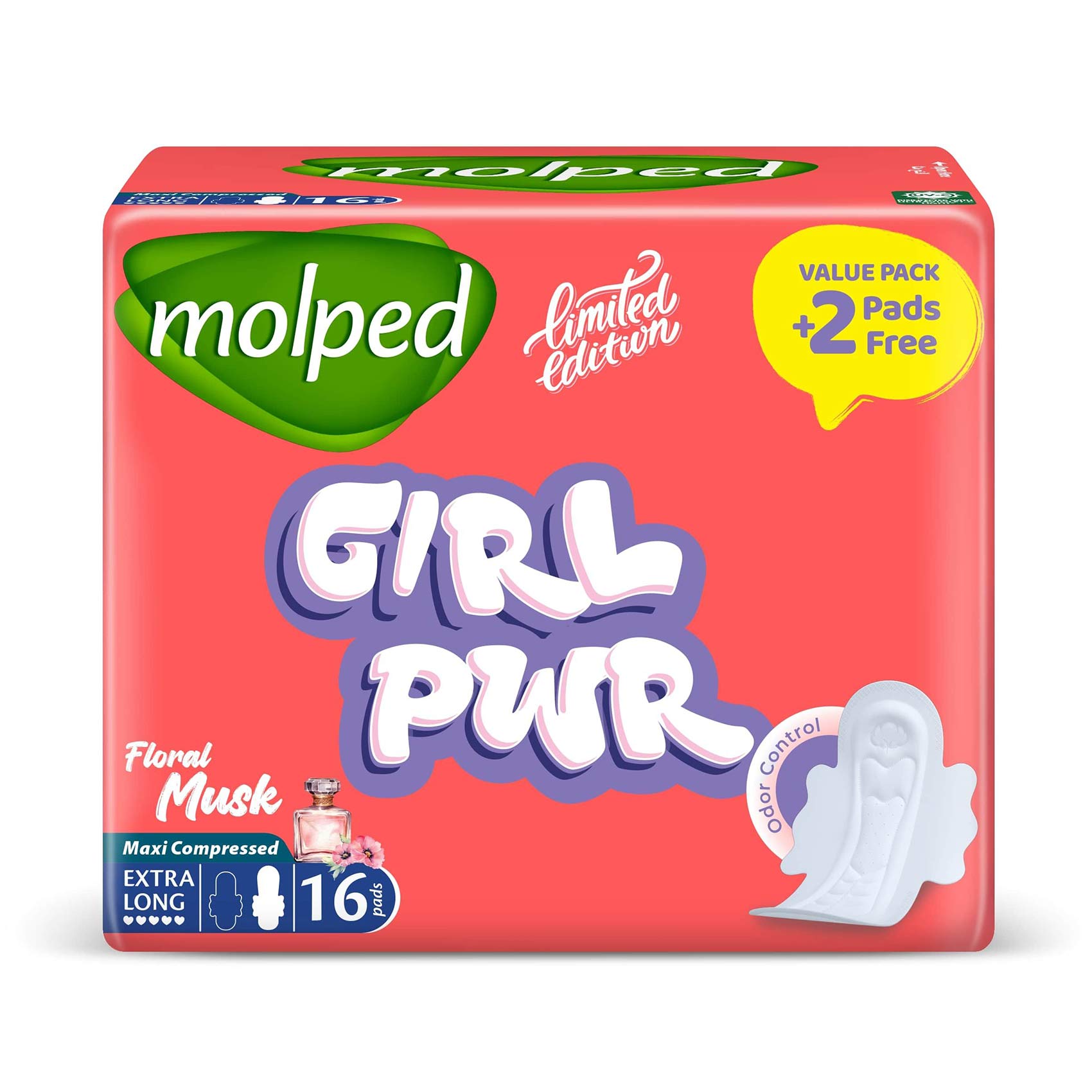 New MOLPED FLORAL MUSK 16 PADS MAXI COMPRESSED EXTRA LONG! Get maximum protection with these extra long pads, compressed for easy storage and convenience. Stay fresh and confident all day with the delightful floral musk scent. 🌸💜👍