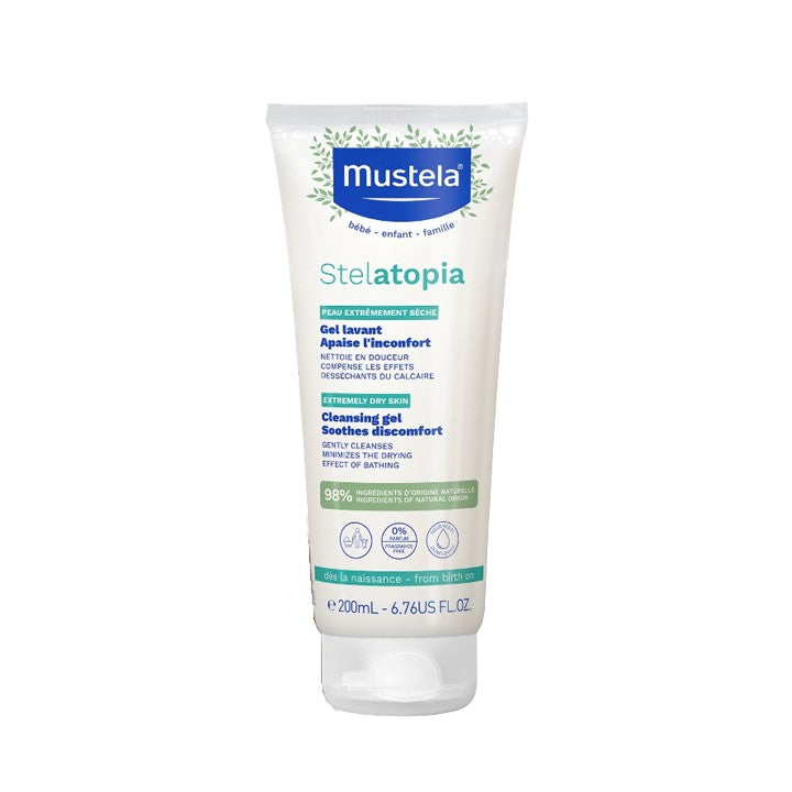 غسول للأطفال للبشرة الجافة جداً من ماركة موستيلا الفرنسية، تركيبة جل غنية بالمكونات الطبيعية بنسبة 98% وزهرة عباد الشمس ينظف بشرة الاطفال الرقيقة بلطف، يكون طبقة حماية ويهدئ البشرة المتهيجة والجافة جداً ليمنحها الملمس الناعم والنضارة