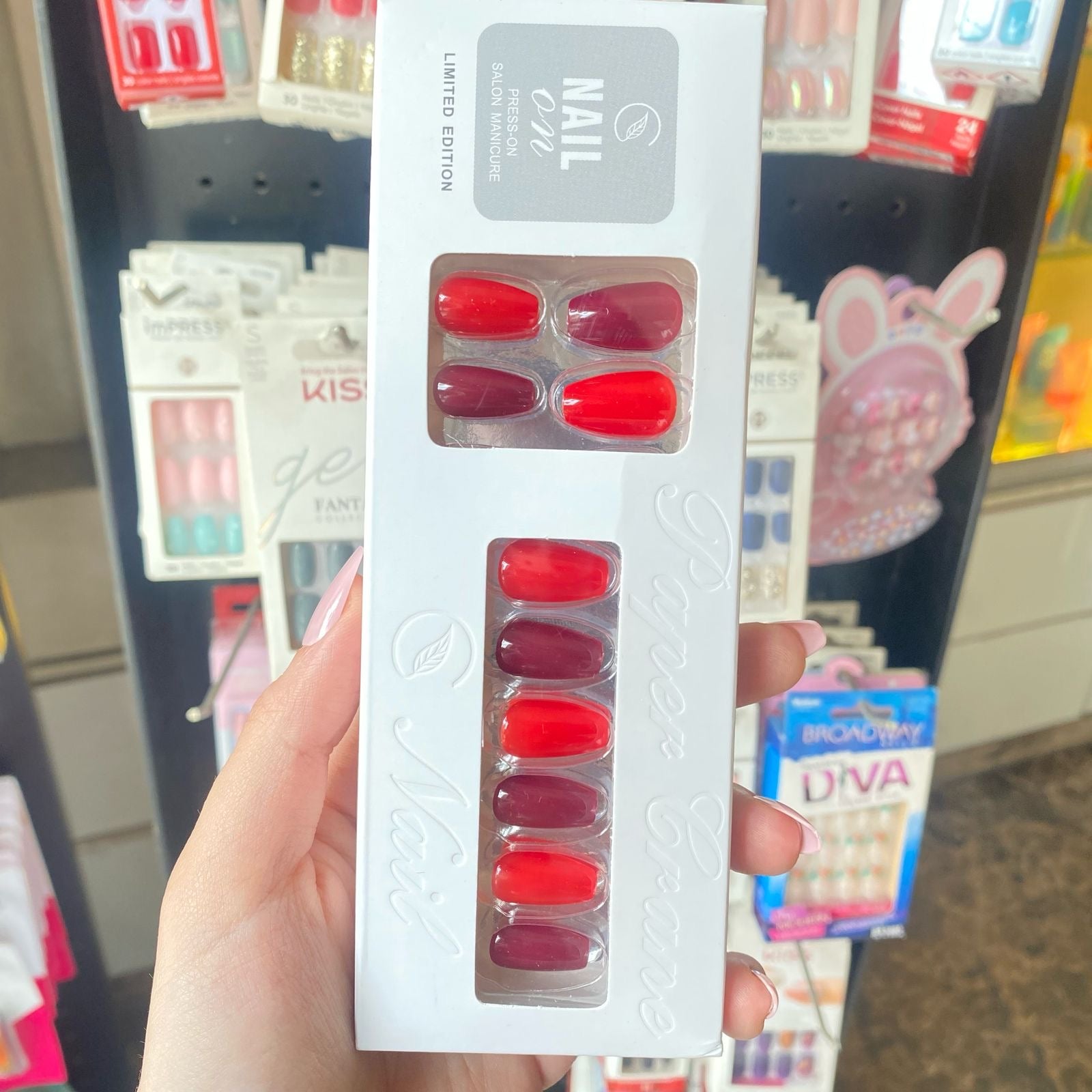PAPER CRARE NAIL ON PRESS RED & BURGANDY