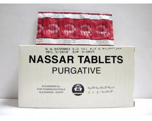 الاستخدامات:أقراص نصار عبارة عن دواء مركب يحتوي على خلاصة الصبار، والبيلادونا، والكولوسينث، وراتنج السكاموني. غالبًا ما يستخدم هذا المزيج كملين وقد يساعد في تخفيف الإمساك أو تعزيز حركة الأمعاء.