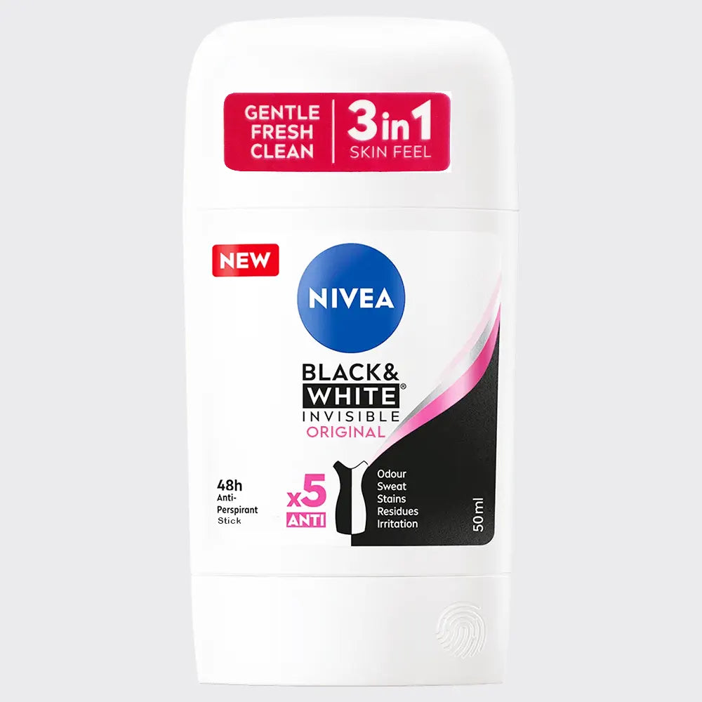 👀 Keep your clothes stain-free with NIVEA BLACK AND WHITE INVISIBLE CLEAR ANTI-PERSPIRANT STICK 50ML. This powerful formula provides 48-hour protection against sweat and odor while leaving no residue on your clothes. Stay confident and fresh all day long!