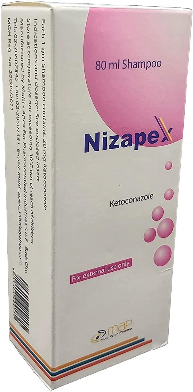 يحتوي نيزابكس شامبو لجميع انواع الشعر – 80مل على الكيتوكونازول الذي له نشاط مضاد للفطريات