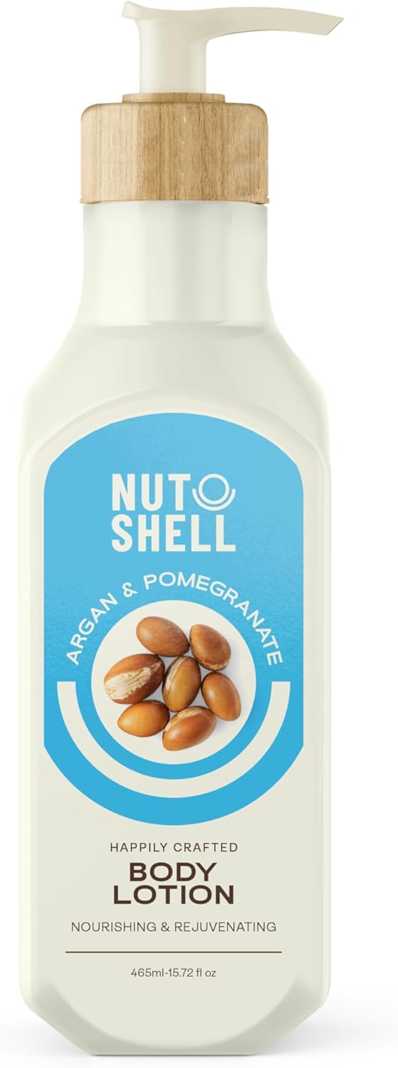 Nutshell Argan and Pomegranate Body Lotion that moisturizes, softens and nourishes the skin. Step out of the body lotion with skin that is not only refreshed but also subtly scented, embracing the exquisite blend of argan and pomegranate. Body Lotion that contains argan oil. Argan oil is rich in monounsaturated fats, which help moisturize and nourish the skin.