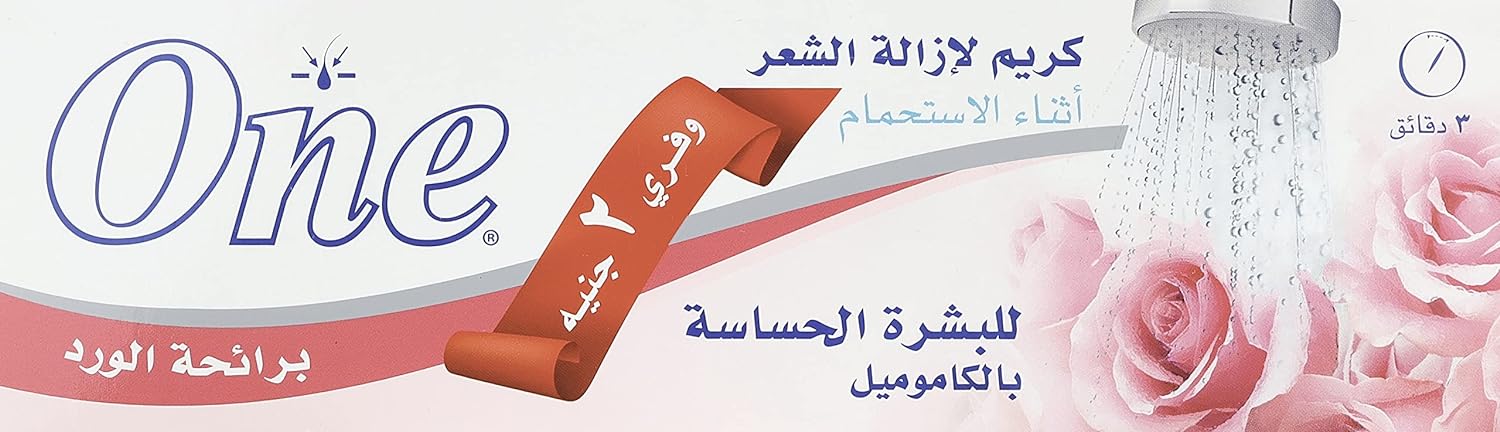 • كريم ون لإزالة الشعر برائحة الورد المنعش غني ببودرة الكاموميل الملطفة، ليمنح بشرتك الحساسة العناية التي تستحقها في 3 دقئق فقط وتحميها من إلتهابات الجلد.