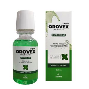 Keep your mouth feeling clean and refreshed with OROVEX PEPPERMINT MOUTH WASH LIQUID. Made with peppermint extract, this mouth wash liquid leaves a refreshing and cooling sensation in your mouth. Packaged in a convenient 250ml bottle, perfect for on-the-go use. 🌱🍃