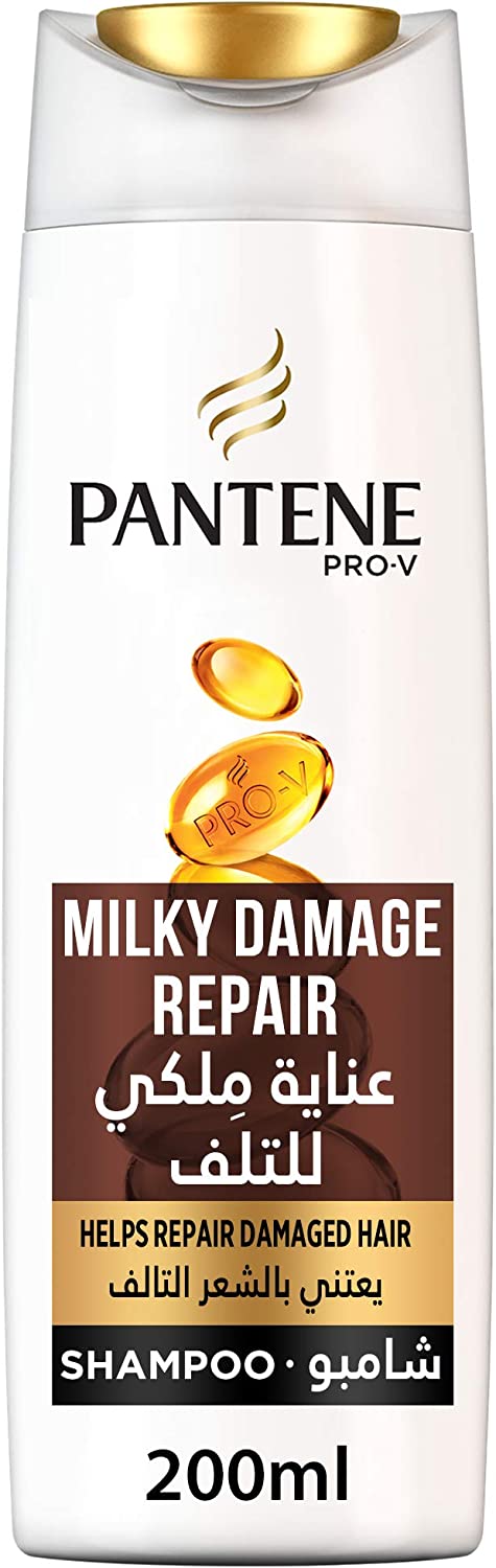 Restore your hair's natural beauty and shine with Pantene Pro-V Milky Damage Repair shampoo, specially designed for damaged and dry hair. Its gentle, but deeply nourishing cleansing formula with milky lotion, locks moisture inside each hair strand to help repair styling-induced damage and protect your hair from recurring moisture loss. It also works to make it more resistant to styling-related damage in the future, leaving your hair smoother and healthier-looking. For best results, use with Pantene Pro-V Milky Damage Repair conditioner and hair treatments.