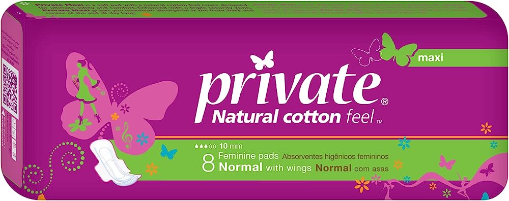 فوط برايفت الصحية من سانيتا للمنتجات الاستهلاكية ذات قدرة امتصاص عالية وملمس ناعم، مانعة للتسرب بشكل أقوى 3 مرات، ماكسي مغلفة، عادية، 8 فوط، مناسبة للنساء