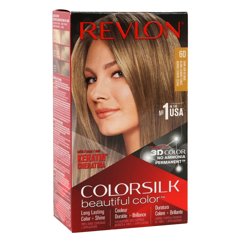 🌈 🙌 Get vibrant hair color that lasts with REVLON 60 COLORSILK WITH KERATIN 3D COLOR! Infused with keratin for added nourishment and shine, this dye offers 100% gray coverage and a range of 60 stunning shades. Say goodbye to dull hair and hello to beautiful, healthy-looking locks! 💁♀️