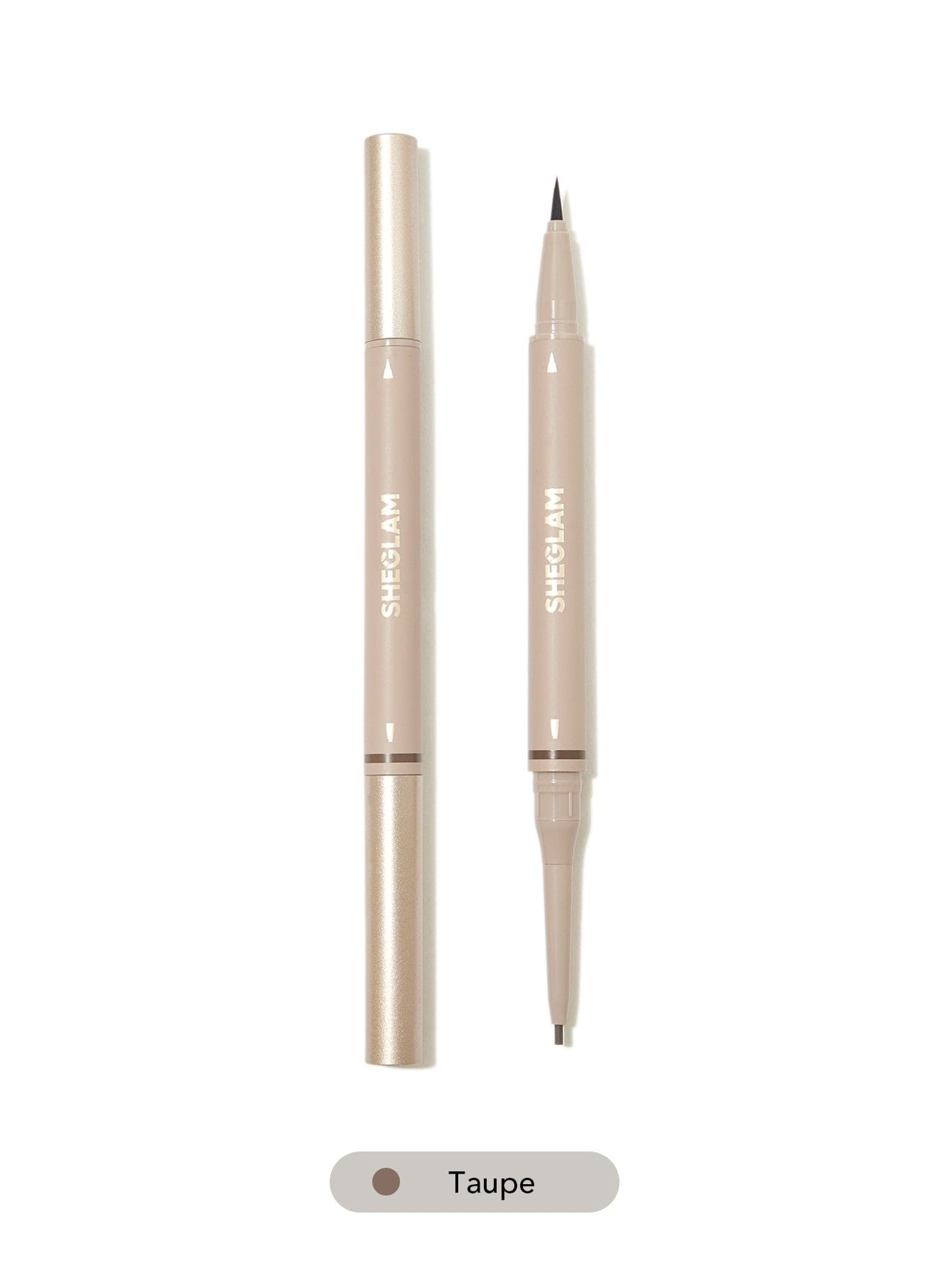 Details: Up your brow game from every angle with our double-ended eyebrow pencil. One side features a waterproof matte cream tip that's designed extra skinny for precise lines that mimic your natural hairs. The other end offers a luxe liquid that's waterproof, sweat-proof & oil-resistant, and infused with multiple pigments for a well-rounded shade. And what's even more magical? This baby is built for all brow types and skin tones because in our world, everyone deserves bomb brows!