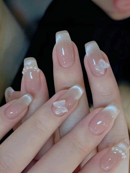 10PCS زهرة الفراشة الكريستالية ، لؤلؤ العين القط المصنوع يدويًا بالكامل اضافر صناعيه اظافر اصطناع