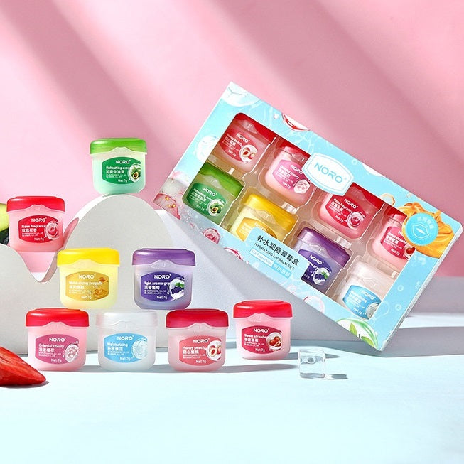 This lip balm set keeps lips hydrated and healthy. Includes 8pcs of NORO lip balm, each containing 7g for long-lasting moisture. 💋🌸💧