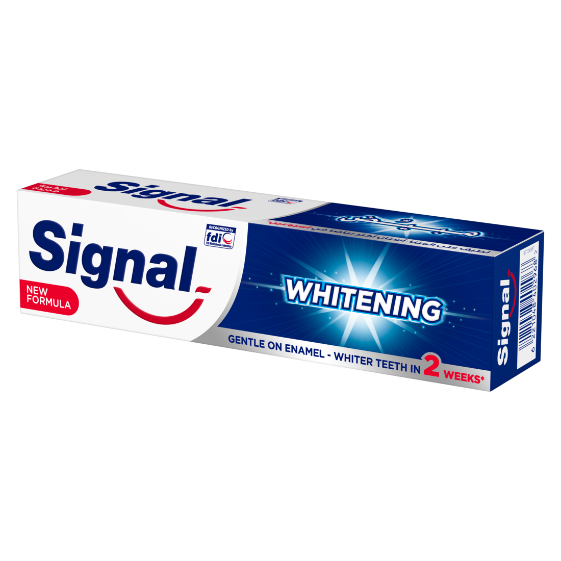 Say goodbye to dingy teeth with SIGNAL Whitening's NEW Formula! This awesome 100ml bottle of whitening power will leave you with a radiant, sparkling smile in no time. Boost your self-confidence, and shine your way into any room with whiter teeth! (Seriously, everyone will be jealous!)