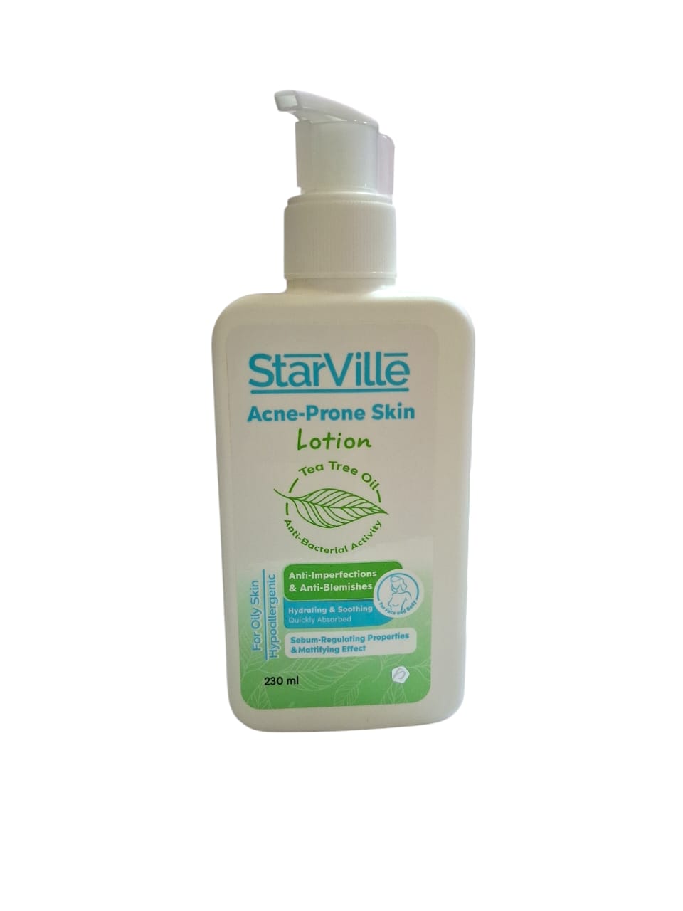 Keep your skin clear and confident with STARVILLE ACNE PRONE BODY LOTION 230ML! Formulated with powerful acne-fighting ingredients, this body lotion helps prevent breakouts and leaves your skin feeling smooth and hydrated. Don't let acne hold you back from taking risks and living boldly. Try STARVILLE today!