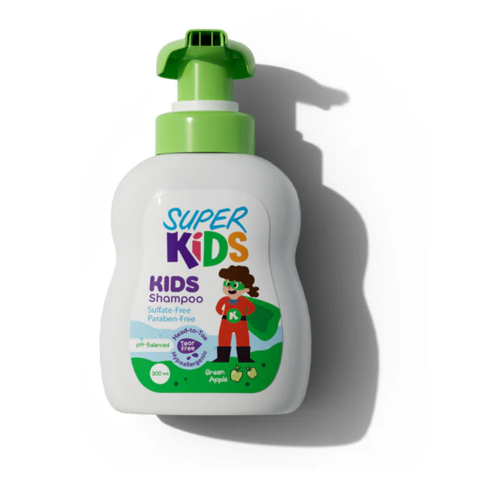 شامبو سوبر كيدز للأطفال امن من عمر سنتين هو الشامبو المفضل لديك والذي يوفر تنظيفًا عميقًا لشعر طفلك. آمن للاستخدام لأنه خالي من الكبريتات والسيليكون والبارابين والسيليكون الفثالات والدموع. متوفر ب 3 عطور ، تفاح أخضر ، ميلك شيك فراولة ، ومانجو أفريقي.