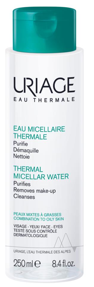 Soak a cotton pad with Thermal Micellar Water and gently wipe over the face, eyes and neck to cleanse without rinsing. Complete the eye make-up removal with the Waterproof Eye Make-up Remover. Spray Uriage Thermal Water all over the face and let it penetrate. Do not dry. Finish by applying your daily care product.
