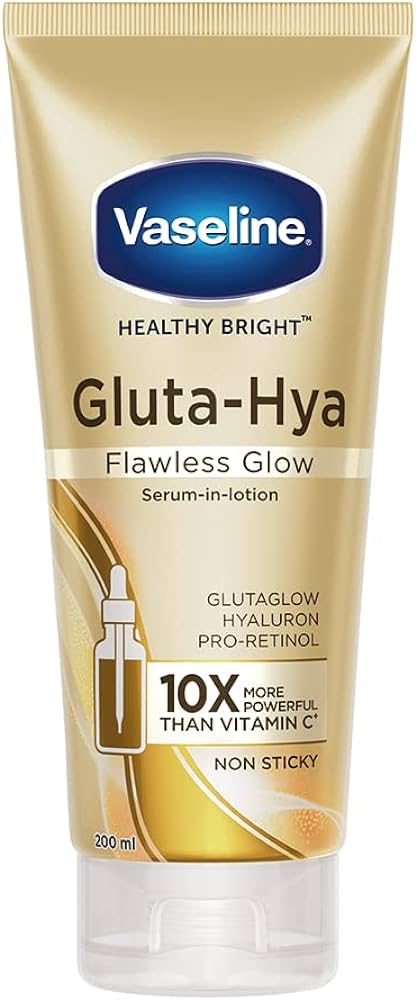 For over 150 years, Vaseline has been passionate about healing skin and ensuring happy skin, everyday for EveryBody. We believe 'Healthy Skin is Beautiful Skin', that helps you keep up with the demands of life. Vaseline's Gluta-Hya is a revolutionary product range from the house of Vaseline with advanced brightening ingredients & has a super-light sensory. The unique sensory of the serum-burst lotion is lighter and fresher than a lotion, silkier and smoother than a gel. Gluta-Hya gives you ‘Visibly Brighter Skin from the First Use’. It is boosted with GlutaGlow technology which is 10x more powerful than Vitamin C. Boost your skin's moisture for dewy skin with Hyaluron. Pro-Retinol exfoliates dead skin cells to give you even toned skin. Non-sticky formula & Easy to absorb. Spreads easily all over the body. Bring back your Glow with Vaseline's Gluta-Hya Range. It comes in two variants: Flawless Glow for Even Toned Skin and Dewy Radiance for Radiant Skin. Intense heat, pollution and moisture loss takes a toll on your skin making it look dull and lose its natural glow. And applying your regular body lotions can feel heavy and sticky especially in summers. Unlike Heavy Lotions, Gluta-Hya has super-light texture which is perfect for Indian weather. Experience the goodness of Vaseline's Gluta-Hya Range, and say bye-bye to dull body skin.