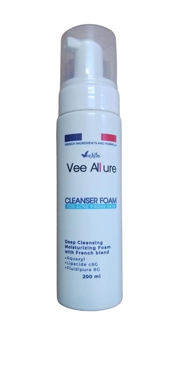 "🧼 Cleanse and combat acne with VEEXIA's VEE ALLURE CLEANSER FOAM. Formulated specifically for acne-prone skin, this gentle foam wash removes impurities and unclogs pores. Get a refreshed and clear complexion with every use. 200ml size."